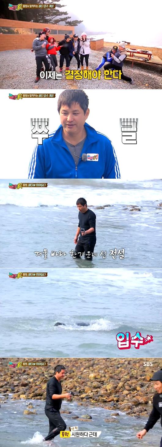 이종원은 망설이지 않고 시원하게 바다에 뛰어 들었다. 추운 날씨에 오히려 다른 멤버들이 눈을 제대로 못 떴지만, 이종원은 머리 끝부터 발 끝까지 바다에 몸을 담근 후 위풍당당하게 돌아왔다.