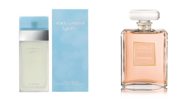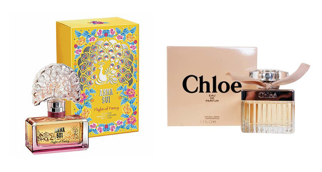 왼쪽부터 안나수이 '플라잇 오브 팬시', 클로에 '우먼 오 드 퍼퓸', 아래는 왼쪽부터 돌체앤가바나 '라이트 블루 우먼 오드 뚜왈렛', 샤넬 '코코 마드모아젤 오 드 빠르펭' / 글로우픽 제공