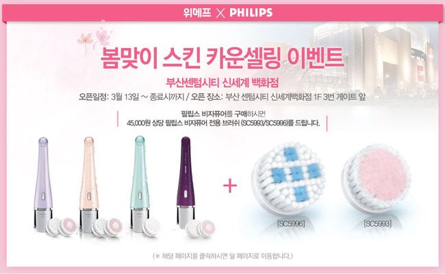 오프라인 이벤트 기간은 13일부터 19일까지 신세계 백화점 부산 센텀점 1층 3번게이트 앞에서 '필립스 비자퓨어 봄맞이 스킨 카운셀링' 이벤트를 진행한다.