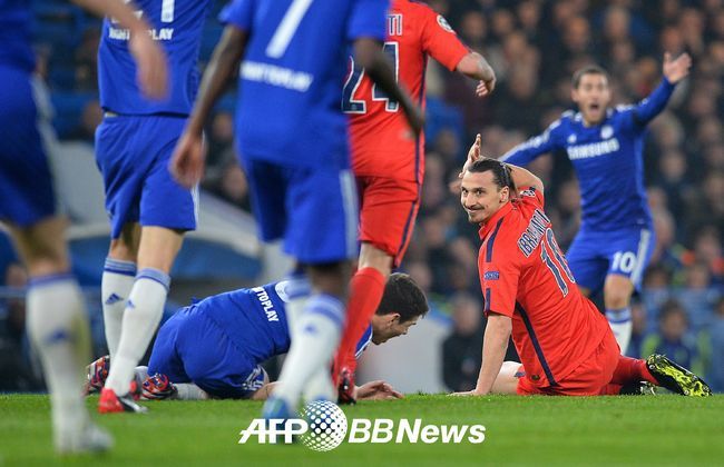 첼시와 파리 생제르망전은 전혀 다른 양상으로 흘러갔다. 팽팽하던 전반 32분 예상치 못한 변수가 발생했다. 파리 생제르망의 에이스이자 주포인 즐라탄 이브라히모비치가 오스카를 향해 위협적인 태클을 가하자 주심은 즉시 레드카드를 꺼내들었다. 파리 생제르망 선수들이 강력하게 항의했지만 받아들여지지 않았다. 치명적인 타격이었다. 파리 생제르망은 에이스를 잃으며 수적 열세에 몰렸다. 또한 측면 공격수 루카스 모우라가 부상으로 결장한 상황서 앞선의 무게감이 현저히 떨어지는 어려움을 겪었다.