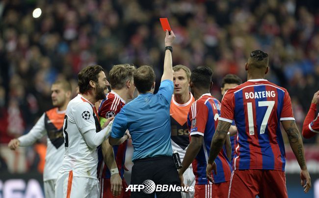 치열한 승부가 예상됐다. 한 쪽에선 레드 카드 1장이 결정적인 변수가 됐다. 다른 한 쪽에선 수적 열세를 넘어 기적같은 드라마를 연출했다. 뮌헨과 샤흐타르의 경기는 예열을 마치기도 전인 전반 3분 만에 레드 카드 변수가 나왔다. 샤흐타르의 중앙 수비수인 올렉산드르 쿠체르가 박스 안에서 마리오 괴체에게 깊숙한 태클을 가하며 퇴장을 당했다. 토마스 뮐러가 페널티킥 키커로 나서 전반 4분 만에 선제골을 넣었다.