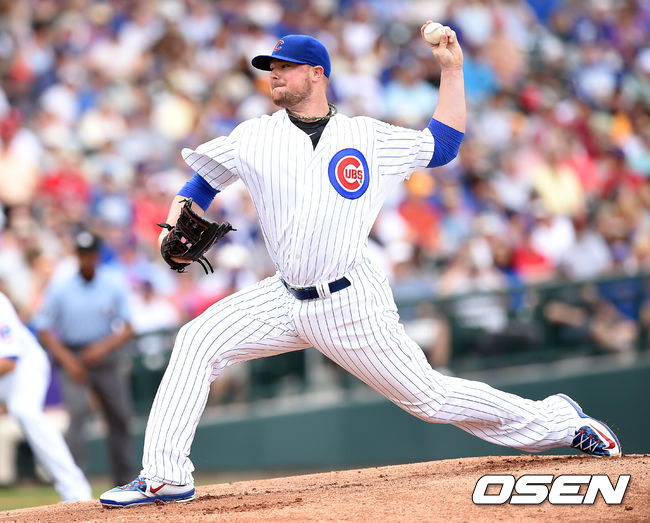 시카고 컵스 존 레스터가 역투하고 있다.