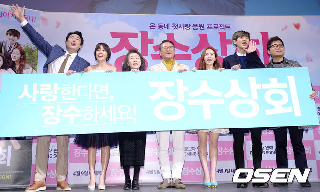 12일 오전 서울 강남구 신사동 CGV 압구정점에서 열린 영화 '장수상회' 제작보고회에서 출연진들이 포토타임을 갖고 있다.