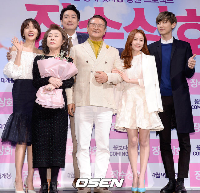 12일 오전 서울 강남구 신사동 CGV 압구정점에서 열린 영화 '장수상회' 제작보고회에서 출연진들이 포토타임을 갖고 있다.