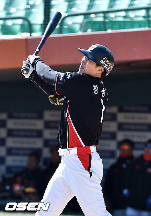 12일 오후 부산 사직구장서 ‘2015 타이어뱅크 KBO 리그’ 시범경기 롯데 자이언츠와 kt 위즈의 경기가 열렸다. 6회초 1사 주자 1루 kt 장성호가 좌월 투런 홈런을 날리고 있다.