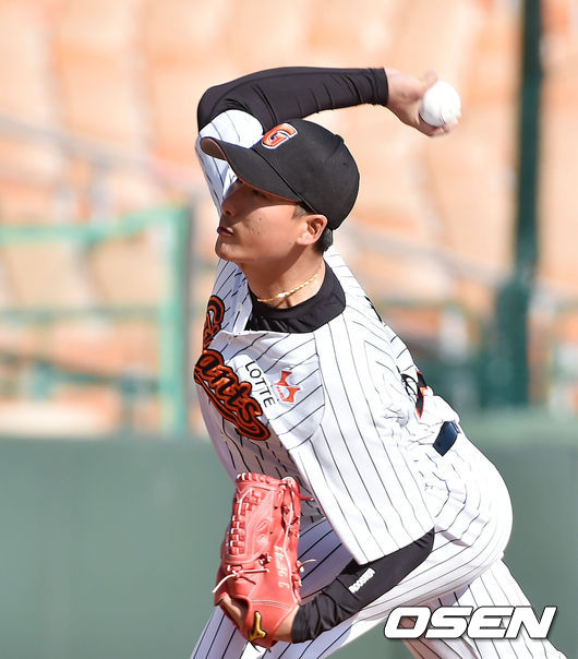 12일 오후 부산 사직구장서 ‘2015 타이어뱅크 KBO 리그’ 시범경기 롯데 자이언츠와 kt 위즈의 경기가 열렸다. 8회 롯데 정재훈이 힘차게 공을 뿌리고 있다.