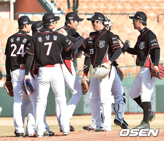 경기를 마치고 kt 선수들이 마운드 근처에 모여 기쁨을 나누고 있다. / rumi@osen.co.kr