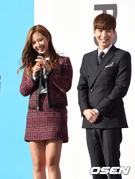 소녀시대 유리와 슈퍼주니어 이특이 미소를 짓고 있다.