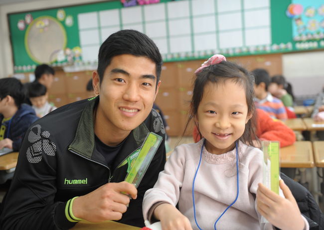 ‘자’를 선물받은 전주 효림초등학교 1학년 공서현 학생은 “ 선물도 받고 축구선수도 만나서 너무 좋았어요. 아빠에게 자랑하고 꼭 응원 갈꺼에요”라며 소감을 말했다.