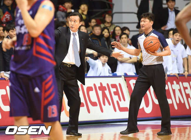 2쿼터, 심판판정에 LG 김진 감독이 비디오판독 요청을 하고 있다.