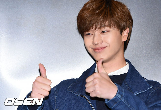 12일 오후 서울 종로구 연건동 홍익대 대학로 아트센터에서 열린 뮤지컬 '아가사'의 VIP시사회에서 비투비 육성재가 포토타임을 갖고 있다.