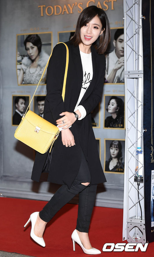 12일 오후 서울 종로구 연건동 홍익대 대학로 아트센터에서 열린 뮤지컬 '아가사'의 VIP시사회에서 티아라 은정이 입장하고 있다.