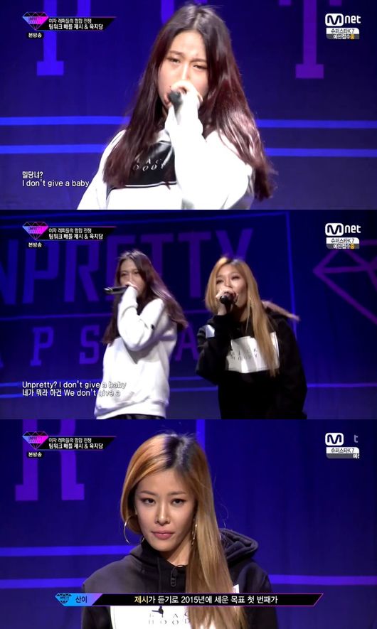 두 사람은 12일 방송된 엠넷 서바이벌 프로그램 ‘언프리티 랩스타’에서 한 팀을 이뤄 팀워크 배틀에 참여했다.