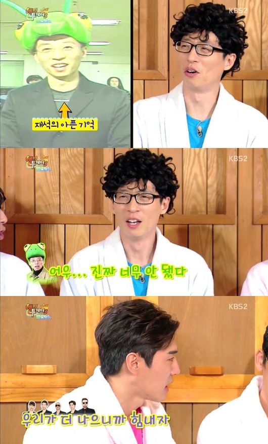 유재석은 12일 오후 방송된 KBS 2TV 예능프로그램 '해피투게더3'에서 메뚜기 탈을 쓰던 과거를 떠올리며 "god와 서로 잘 안될거라고 생각했다"고 말했다.