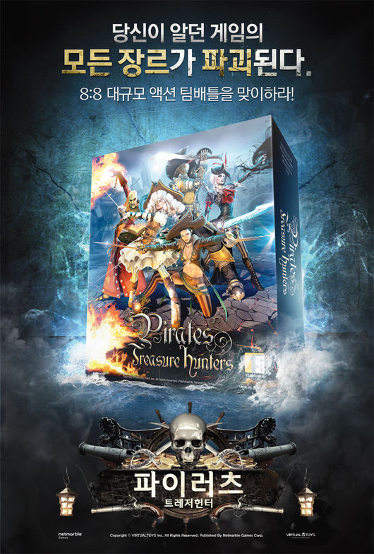 ‘파이러츠:트레저헌터’는 최대 8대8 대결을 즐길 수 있는 신개념 팀 대전 액션 게임으로 △개성 강한 캐릭터들의 자유롭고 박진감 넘치는 전투 액션 △지루할 틈 없는 짧고 빠른 플레이 전개 △실시간 전략, AOS, 슈팅 등 여러 인기 장르의 장점과 재미 만을 모아 탄생시킨 혁신적인 게임성 △중립 무기, 탈것, 함정과 같은 풍부한 전략적 활용 요소 등이 특징이다.