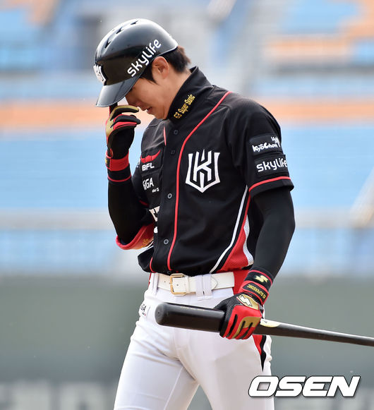 13일 오후 부산 사직구장서 ‘2015 타이어뱅크 KBO 리그’ 시범경기 롯데 자이언츠와 kt 위즈의 경기가 열렸다. 1회초 2사 kt 이대형이 타석에서 삼진아웃을 당한 후 아쉬워하고 있다.