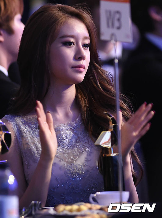 시상식에 참석한 티아라 지연이 박수를 치고 있다.