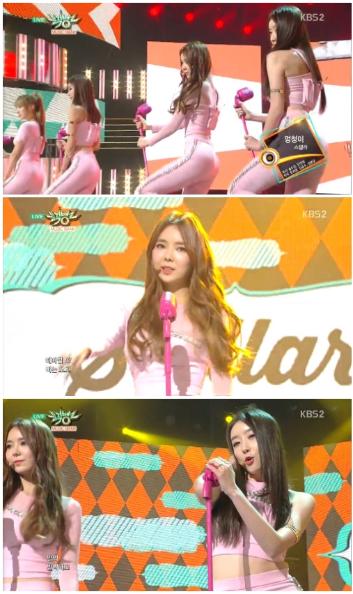 스텔라는 13일 오후 방송된 KBS 2TV 음악프로그램 '뮤직뱅크'에서 신곡 '멍청이'로 무대를 꾸몄다. 이날 스텔라 멤버들은 몸매가 드러나는 의상을 입고 무대 위에 올라 은근한 섹시함이 묻어나는 사랑스러운 안무를 선보였다.