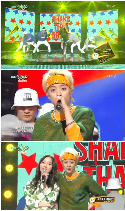 엠버는 화려한 무대에 올라 활기 넘치는 퍼포먼스로 무대를 장악했다. '쉐이크 댓 브라스'는 소녀시대의 멤버 태연이 피처링한 곡이다.
