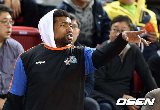2쿼터 전자랜드 포웰이 벤치에서 선수들을 독려하고 있다.