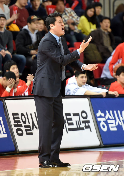 2쿼터 SK 문경은 감독이 작전을 지시하고 있다.