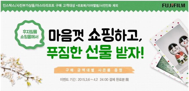 한국후지필름(대표 원종호, www.fujifilm.co.kr)은 봄을 맞아 오는 4월 2일까지 후지필름 쇼핑몰 이용객 대상으로 사은품 증정 이벤트를 실시한다.