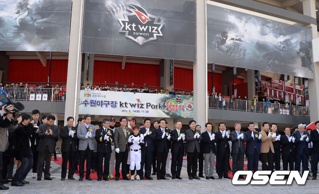 이날 행사에는 염태영 수원시장을 비롯해 남경필 경기도지사, kt wiz 구단주 황창규 회장, 구본능 KBO 총재, 지역 국회의원 및 체육 관계자 200여명이 참석했다. /sunday@osen.co.kr