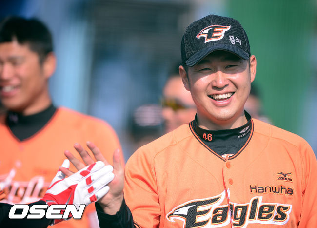 송은범은 14일 마산구장에서 열리는 NC와 시범경기에 선발등판한다. 지난해 FA가 돼 한화와 4년 총액 34억원의 조건으로 계약한 송은범이 오렌지 유니폼을 입고 공식 경기 데뷔전을 치르는 것이다. 권혁과 배영수에 이어 FA 3인방의 마지막 주인공이 모습을 드러냈다.
