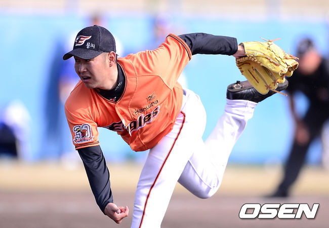 송은범이 한화 유니폼을 입고 공식 경기에 데뷔했다.