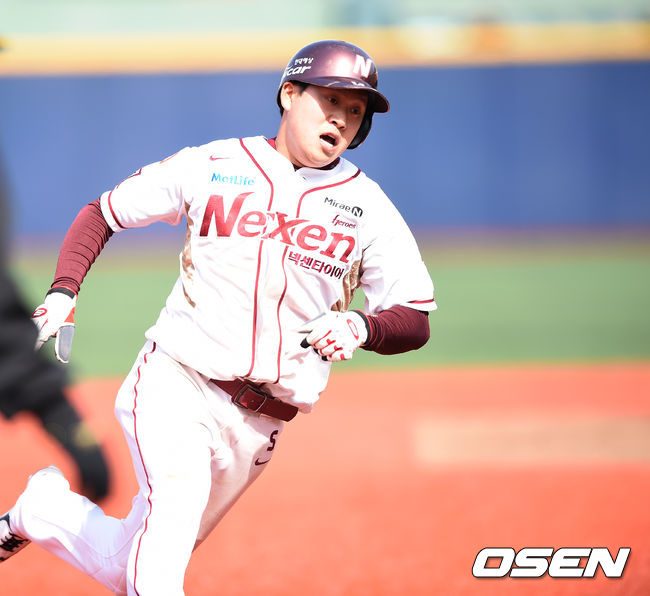 5회말 1사 2루 문우람의 적시타때 2루주자 김지수 역전득점을 향해 홈으로 질주하고 있다.