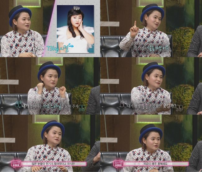 개그우먼 김신영이 “많은 분들이 살 빼고 인기가 떨어졌다고 하지만 나는 지금이 너무 행복하다”고 털어놨다.