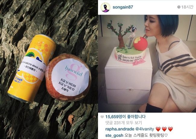 공개된 사진 속에는 가인이 팬들을 위해 준비한 간식 선물의 모습이 담겨있다. 이는 지난 13일 팬들이 가인의 컴백을 기념한 케이크 선물에 대한 보답으로 가인의 남다른 팬사랑을 보여줘 눈길을 끈다.