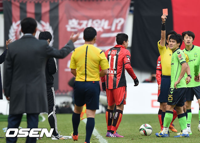 경기후반, 전북 최철순이 레드카드를 받고 있다./ouxou@osen.co.kr