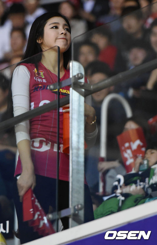 2쿼터 치어리더 김연정이 원정응원석에서 멋진 응원을 펼치고 있다.