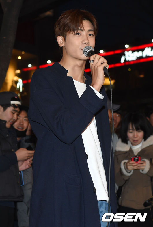 V.O.S 버스킹을 응원온 제국의아이들 멤버 박형식이 인사말을 전하고 있다.