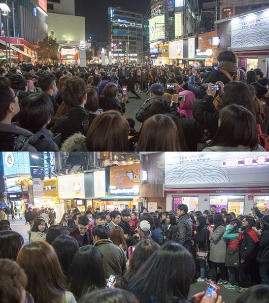 이번 게릴라 공연은 화이트데이를 기념해 팬들과 직접 만나 소통하고 선물을 전달하기 위해 멤버들이 기획한 거. 데뷔곡 '뭣 모르고'로 공연의 포문을 연 이들은, 최근 발표한 '12월 24일'과 '어항 속 물고기' 등 다양한 무대를 꾸몄다. 또 현장을 찾은 관객들에게 사탕반지를 나눠주는 로맨틱한 팬서비스도 진행했다.