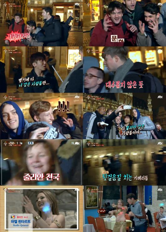 벨기에 청년들은 카메라를 향해 달려가며 소리를 질렀고 카메라 앞을 가로막기까지 했다. 또한 한 여성은 카메라를 향해 손바닥 키스를 날렸다. 예상하지 못했던 벨기에 청년들의 모습에 유세윤은 줄리안에게 “벨기에에 다 너 같은 사람들만 있다”는 반응을 보였다. 정작 줄리안은 익숙한 듯 대수롭지 않게 여겼다.