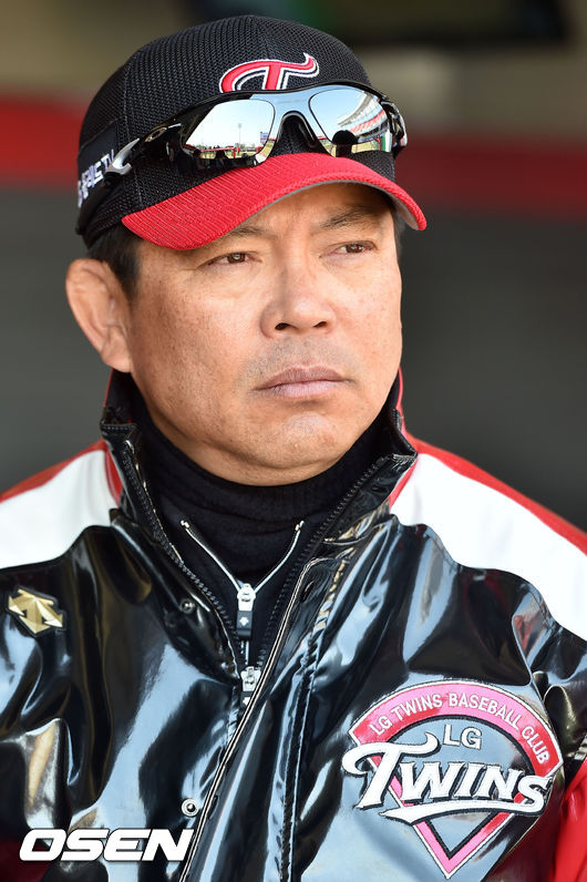 15일 오후 광주 기아 챔피언스 필드서 ‘2015 타이어뱅크 KBO 리그’ 시범경기 KIA 타이거즈와 LG 트윈스의 경기가 열릴 예정인 가운데 양팀 훈련 시간에 LG 양상문 감독이 덕아웃에서 선수들의 훈련을 지켜보고 있다.