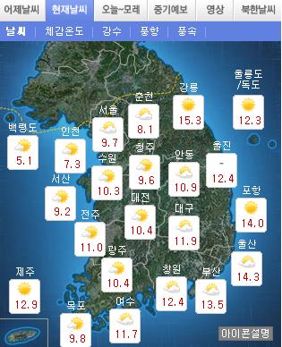 낮 기온은 어제보다 1도~5도 가량 높아 서울 13도, 강릉 15도, 대구 17도, 광주 18도까지 오르겠다.