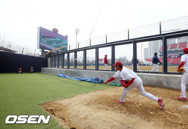 15일 오후 광주 기아 챔피언스 필드서 ‘2015 타이어뱅크 KBO 리그’ 시범경기 KIA 타이거즈와 LG 트윈스의 경기가 열릴 예정인 가운데 양팀 훈련 시간에 불펜 피칭이 진행되고 있다.