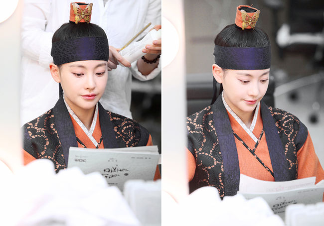 사진에서 오연서는 대본 삼매경에 빠진 오연서는 뚜렷한 이목구비와 백옥피부로 남장에도 굴욕 없는 극강 미모로 눈길을 끈다. 특히 분장 중에도 손에서 대본을 놓지 않으며 촬영 준비에 여념이 없는 모습이다.