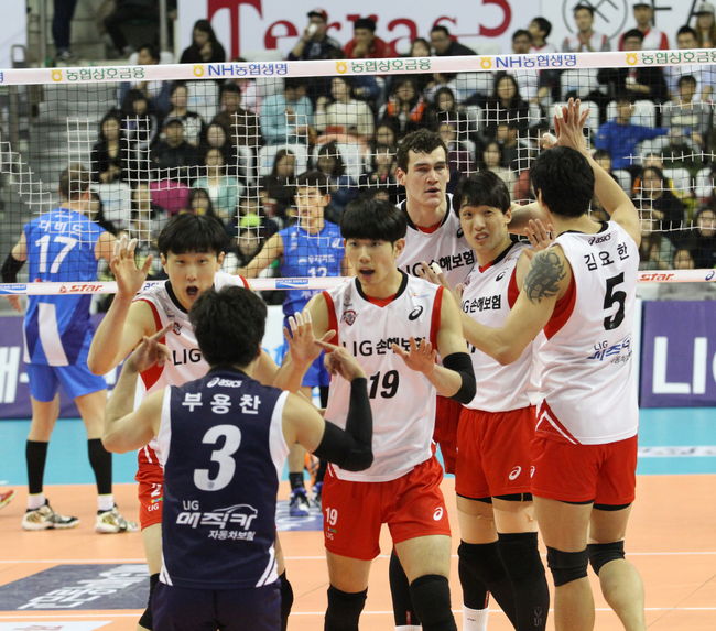 LIG손해보험은 15일 구미 박정희체육관에서 열린 2014-2015시즌 NH농협 V리그 남자부 6라운드 아산 우리카드 한새와 경기서 세트 스코어 3-2(25-20, 20-25, 16-25, 25-20, 17-15) 승리를 거뒀다. 이날 승리로 LIG손해보험은 13승 23패(승점 36)를 기록, LIG손해보험이라는 이름으로 치르는 마지막 경기를 승리로 마무리지었다. 반면 우리카드는 3승 33패(승점 15)로 올시즌을 마무리하게 됐다.