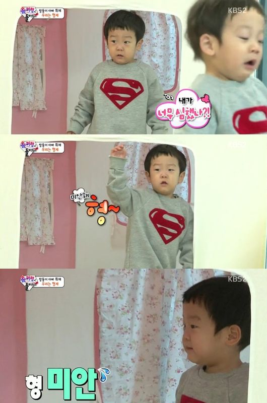 서언-서준 형제는 15일 오후 방송된 KBS 2TV ‘슈퍼맨이 돌아왔다’에서 서로와 재밌게 놀아 눈길을 끌었다.