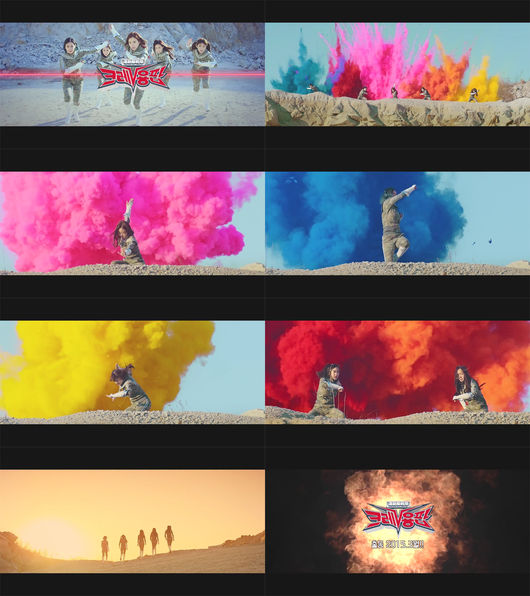 특히 크레용팝의 등 뒤에서 빨강, 주황, 노랑, 파랑, 분홍 등의 색깔로 폭발하는 폭파신이 인상적이다.