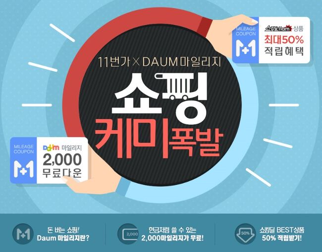 다음카카오에서는 다음 쇼핑하우를 통해 11번가 제품을 구매한 소비자에게 구매가의 50%(최대 2만 원)를 다음 마일리지로 적립해주는 이벤트를 진행한다.
