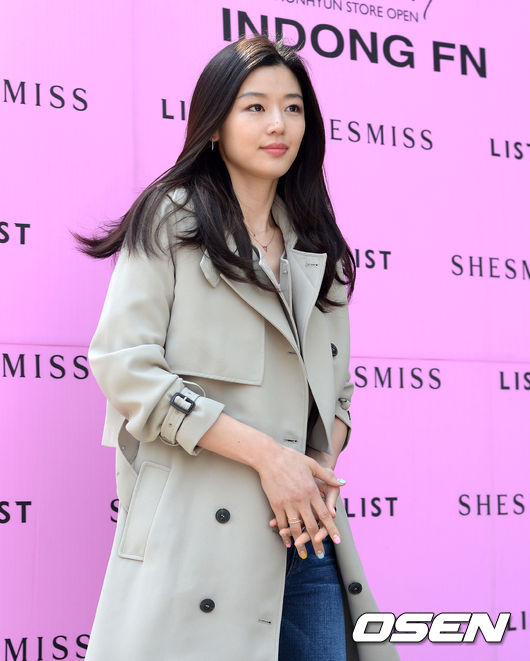 배우 전지현이 16일 오전 서울 반포동 '쉬즈미스' 메가샵 논현점 오픈 1주년 기념 기부금 전달식에 참석했다.