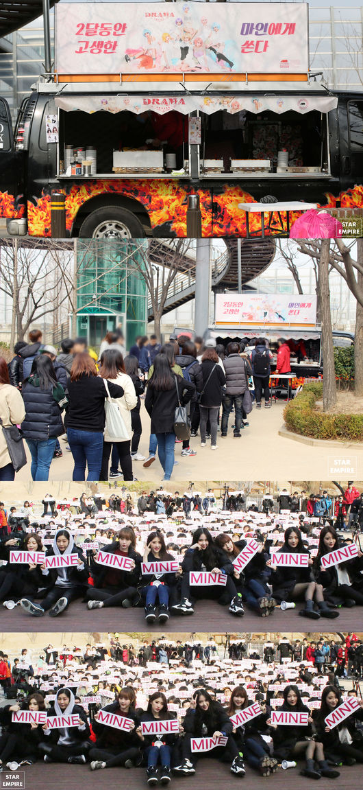 나인뮤지스는 지난 15일 SBS ‘인기가요’에서 미니앨범 ‘드라마’의 공식 활동을 마무리하며 방송 현장을 찾은 팬들과 함께 미니 팬미팅을 가지며 8주간의 긴 공식활동 기간 동안 나인뮤지스를 응원한 팬들을 위해 분식차를 선물했다.