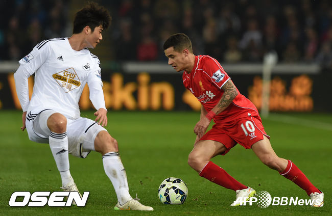 전반전은 스완지 시티와 리버풀의 대등한 경기가 펼쳐졌다. 공격의 짜임새는 리버풀보다 스완지 시티가 더 위였다. 전반 31분에는 기성용에서 시작된 패스가 웨인 라우틀리지를 거쳐 바페팀비 고미스에게 연결돼 위협적인 장면을 만들기도 했다.