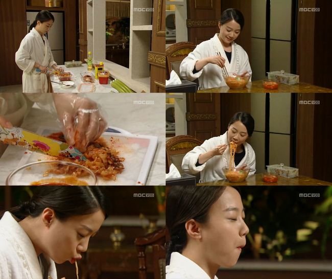 지난 16일 방송된 '압구정백야'에는 여지 없이 육선지의 시댁 라이프가 구체적으로 표현됐다. 육선지가 임신을 암시하는 듯 늦은 밤 비빔국수를 만들어 먹은 것. 이 장면에는 육선지가 면을 삼고, 양념을 하는 것까지 세밀하게 비춰졌고 이는 106회의 엔딩 장면이었다.
