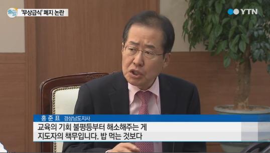경남무상급식 중단 논란이 계속되고 있다. 전국 처음으로 무상급식 폐지를 선언한 경상남도는 추후 일정을 계속 진행하겠다고 거듭 밝힌 가운데 홍준표 경남도지사의 부정평가가 50%에 육박하고 있다.